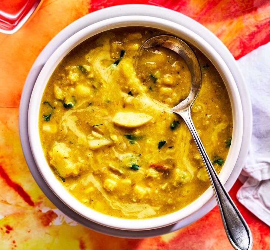 Dodaj kukurydzę i mleko kokosowe, gotuj kolejne 10 minut, aż soczewica będzie miękka.