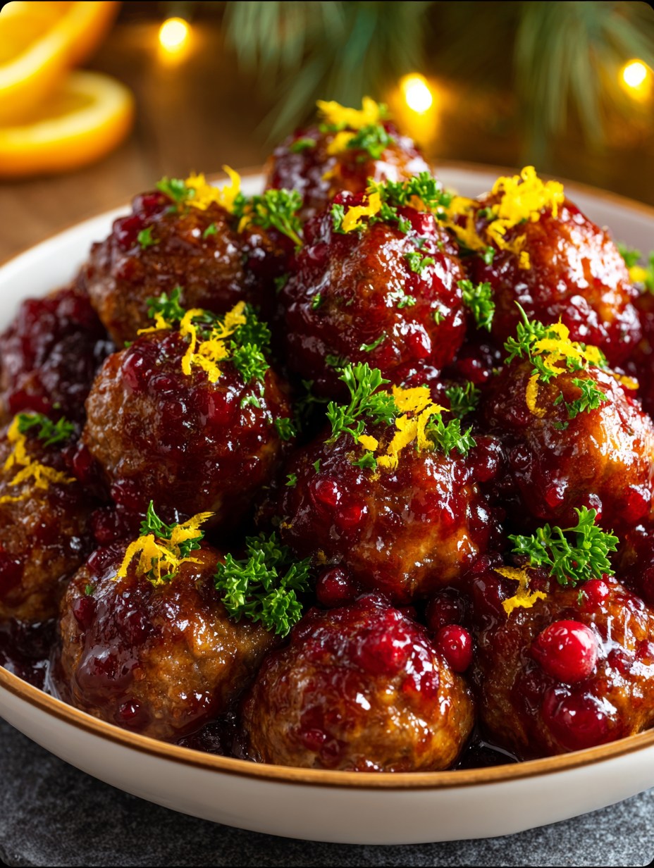 🍊🍒 **Świąteczne klopsiki z żurawiną i pomarańczą 🎄✨ Słodkie, pikantne i idealne na świąteczne spotkania**