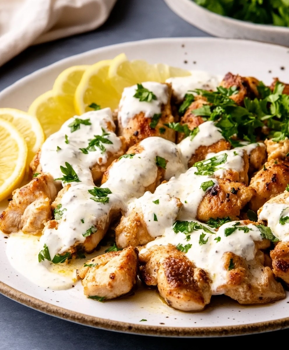 **✨ Delikatny marynowany kurczak w wyrazistym i pikantnym sosie cytrynowo-czosnkowym — soczysty, aromatyczny i idealny z ryżem lub ciepłą pitą!**