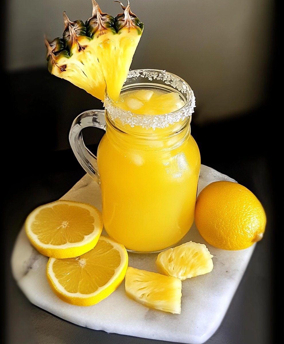 Szukasz orzeźwiającego, orzeźwiającego drinka o tropikalnym charakterze? Ten Ananasowo-Cytrynowa Kropla to idealna równowaga między słodyczą i kwaskowatością, z cytrusową nutą — idealny na słoneczne popołudnia lub brunchowy akcent!