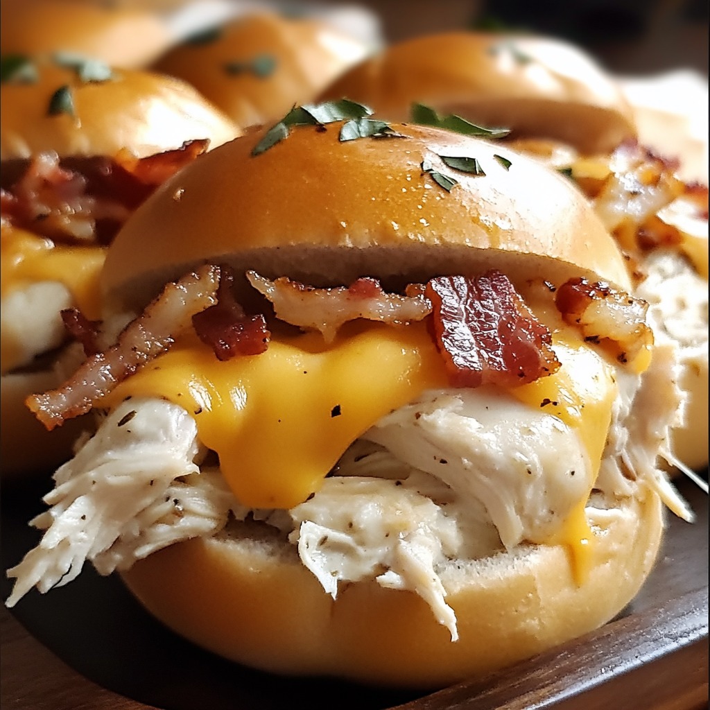 **🍗🥓 Mini kanapki z kurczakiem, bekonem i sosem ranch na słodkich hawajskich bułeczkach 😍🧀**