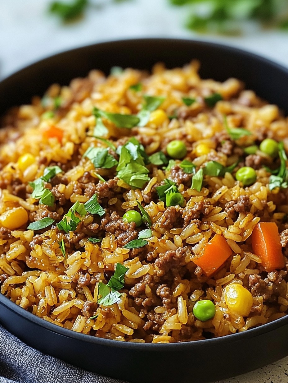 🍚🥩 Pikantny ryż z mieloną wołowiną – sycący posiłek jednogarnkowy!