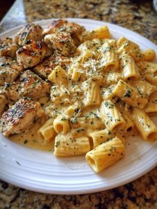 🍝🐔🧄🧀 **Rigatoni z kurczakiem, czosnkiem i parmezanem w kremowym sosie mozzarella Alfredo**