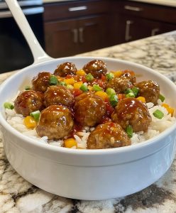 **🔥 Słodko-pikantna zapiekanka z klopsikami w miodzie i czosnku 🍚🍯**