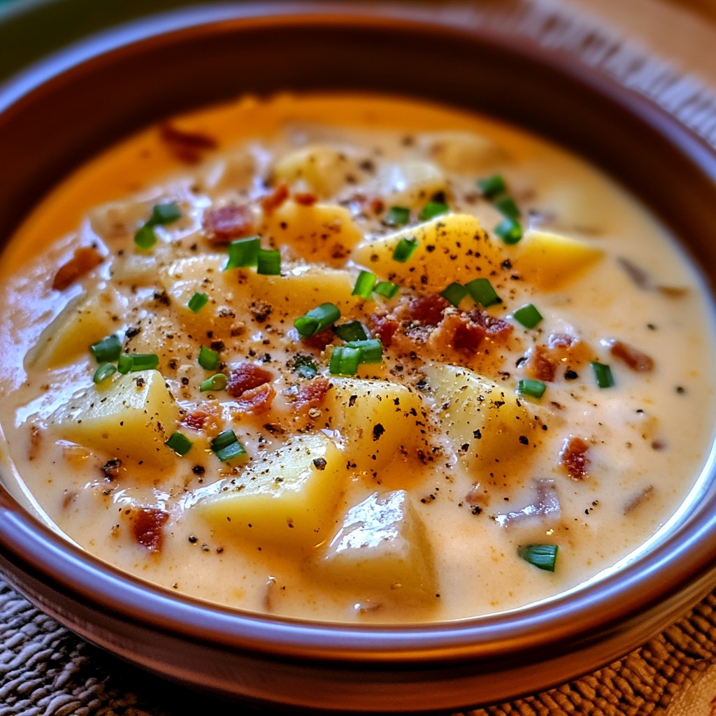 Ciepła, kremowa i niezwykle pocieszająca — ta zupa ziemniaczana jest bogata w chrupiący boczek, ser cheddar i sycące ziemniaki, dzięki czemu idealnie nadaje się na chłodne dni i przytulne wieczory.
