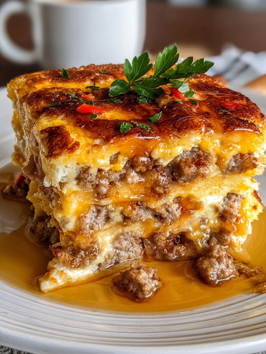 **🥞🌭 Zapiekanka śniadaniowa z naleśnikami i kiełbaskami 🌭🥞**