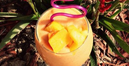 Przelej do szklanki, udekoruj kawa艂kiem mango lub wi贸rkami kokosowymi聽![]()