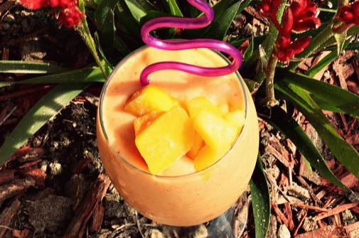 Przelej do szklanki, udekoruj kawa艂kiem mango lub wi贸rkami kokosowymi聽![]()