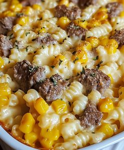 **🧀🌽 Zapiekanka rotini z wołowiną, sosem cheddar i słodką kukurydzą 🍖🍝**