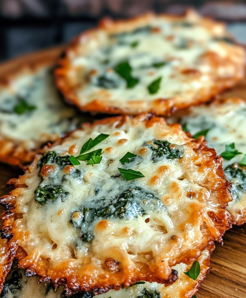 Rozkoszuj się tymi chrupiącymi serowymi pysznościami z kremowym dipem szpinakowym — idealna przekąska lub przystawka, którą pokocha każdy!