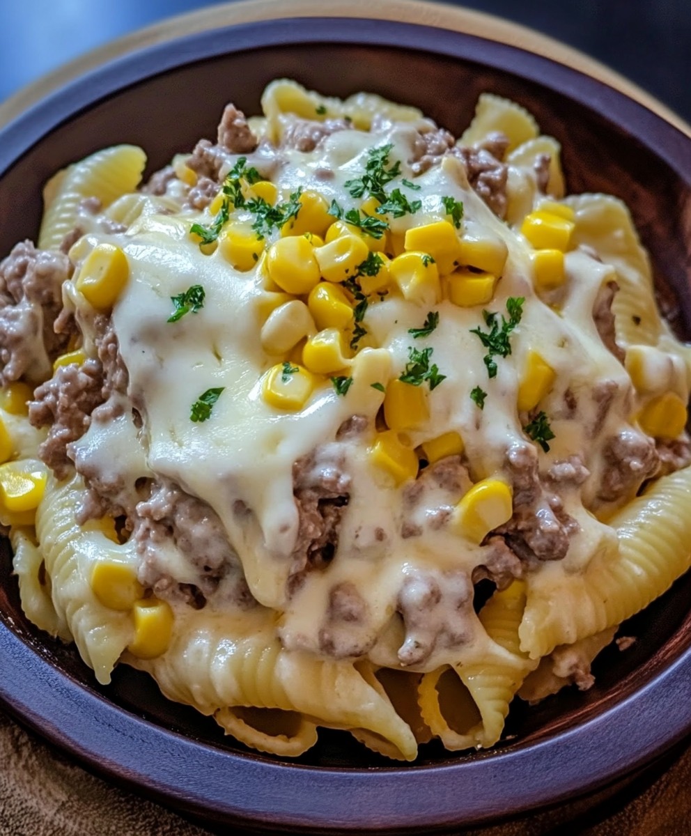 **🧀 Makaron z wołowiną, serem cheddar i kukurydzą w wolnowarze 🌽🍖**