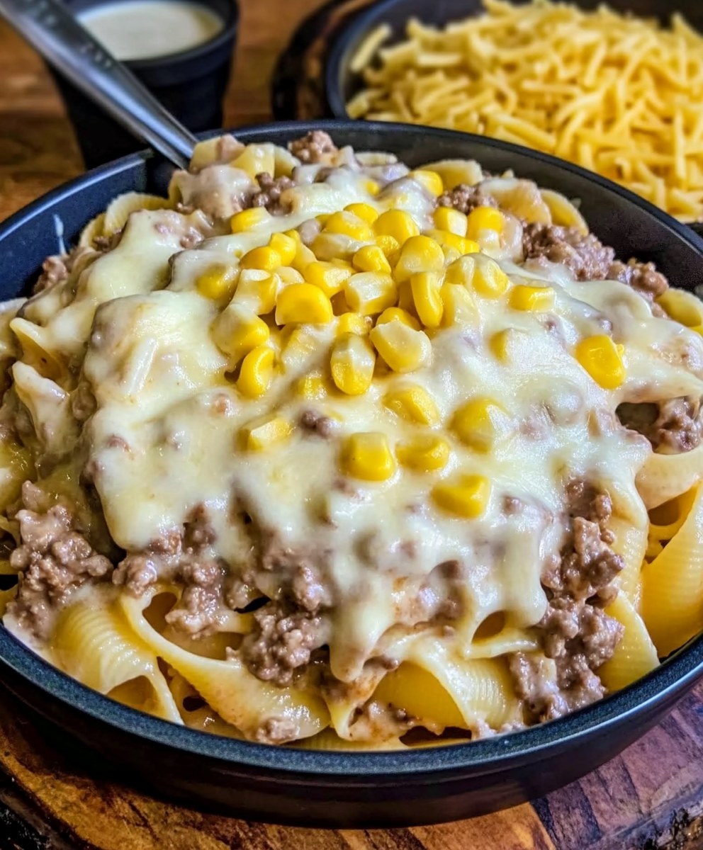 **🔥 Aromatyczna wołowina, kremowy sos ranch, słodka kukurydza i rozpływający się cheddar w połączeniu z makaronem – wszystko gotowane na wolnym ogniu, tworząc przepyszny, komfortowy posiłek!**