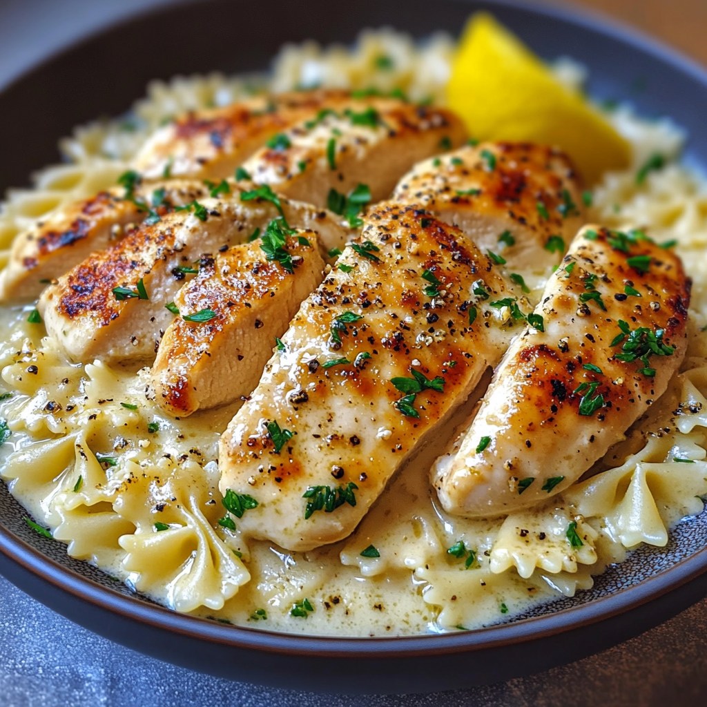 **🧄🍋 Kremowy makaron z kurczakiem i cytryną w sosie czosnkowym 🍝✨**