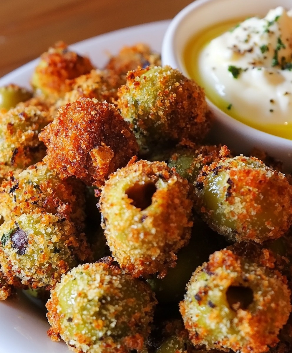 **🧄 Smażone oliwki z czosnkowym aioli – Twoja nowa ulubiona chrupiąca przekąska! 🫒✨**