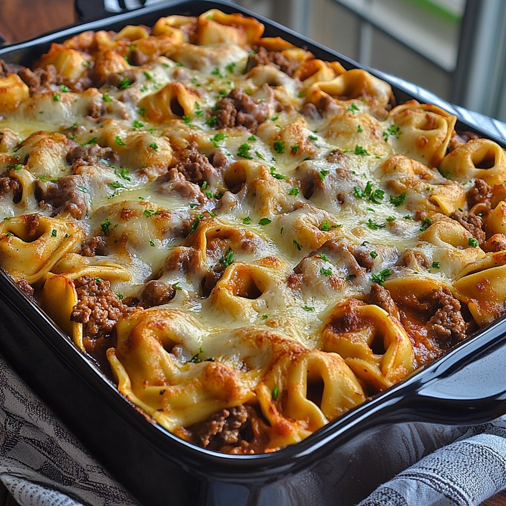 **Klasyczne smaki stek贸w z serem i tortellini 艂膮cz膮 si臋 z serowymi tortellini w tym kremowym, pieczonym w piekarniku daniu!**