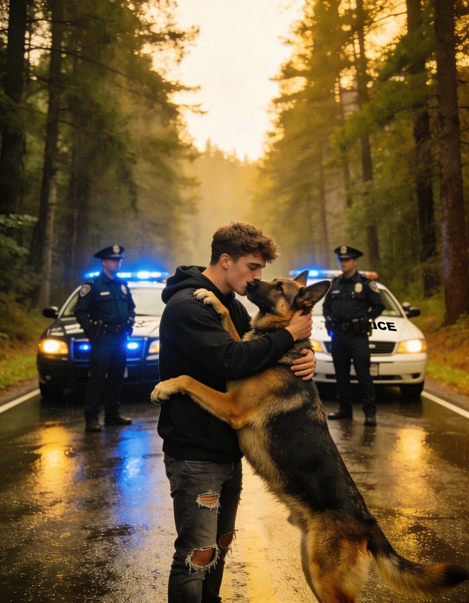 Mgła gęstniała nad asfaltem, a oddech młodego mężczyzny był urywany, jakby każdy oddech był walką. Thor się nie poruszył. Nie warknął. Nie westchnął. Po prostu stał tam, tuląc się do niego, w ciszy, która nie miała miejsca podczas policyjnej interwencji.