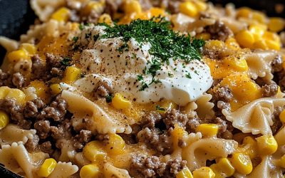 **🍽️ Kremowe muszki z wołowiną i kukurydzą w sosie ranch 🌽🧀** **✨ Kremowe, serowe danie z patelni z mieloną wołowiną,…