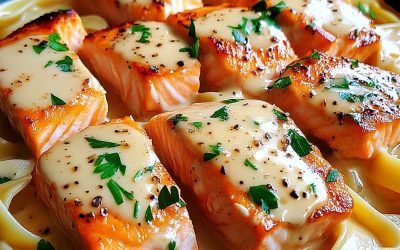 **🍋 Kremowy makaron z łososiem w maśle czosnkowym 🍝🐟** **✨ Ten wymarzony makaron z łososiem jest pełen maślanego, czosnkowego smaku…