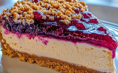 **🥜🍓 Klasyczny sernik z masłem orzechowym i dżemem 🍰** **✨ Pyszne połączenie kremowego masła orzechowego i galaretki owocowej w każdym…