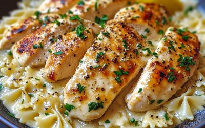 **🧄🍋 Kremowy makaron z kurczakiem i cytryną w sosie czosnkowym 🍝✨** To bogate i pikantne danie makaronowe aż kipi smakiem…