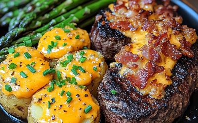 **🔥 Grillowany polędwica wołowa z ziemniakami pieczonymi na ostro i szparagami z czosnkiem 🥩🧄🥔** **Wykwintny posiłek jak w stekhouse'ie w…