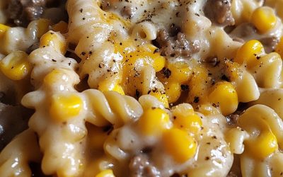 **🍽️ Makaron z wołowiną, sosem ranch i złotą kukurydzą w wolnowarze 🌽🧀** **✨ Kremowe, serowe danie makaronowe z mieloną wołowiną,…