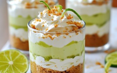 **🍰🍋 Magiczne parfaity z sernika limonkowego bez pieczenia! 🌿🥄** Pikantne, kremowe i pięknie ułożone, te parfaity to idealny cytrusowy przysmak…