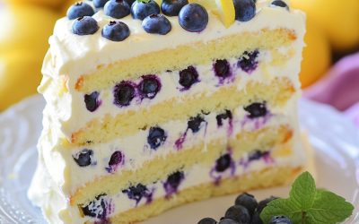 **🍋 Rozkosz z jagód i cytryny 🍇✨** Jasne i pikantne ciasto cytrynowe przełożone bitą śmietaną cytrynową, pełne świeżych jagód i…