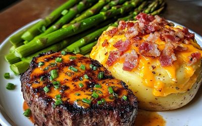 **🔥 Polędwica wołowa z masłem czosnkowym, kremowym ziemniakiem i chrupiącymi szparagami 🧈🥩🥔** **Obiad ze stekiem godny restauracji, łatwy do przygotowania…