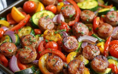 **🔥Zapiekanka z kiełbasą i warzywami z blachy z pikantnym, sekretnym sosem – Cudo z jednej patelni!🌭🥒🍅** Szybka, kolorowa i pełna…