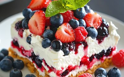 **🎆 Lasagne bez pieczenia z jagodami na 4 lipca – Świąteczna, warstwowa uczta 🇺🇸🍓** Ten deser bez pieczenia łączy kremowe…