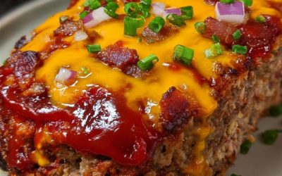 🍔🥓 **Mięsna pieczeń z serem i bekonem 😋** **Składniki:** 🥩 450 g mielonej wołowiny 🐖 1/2 funta mielonej wieprzowiny (lub…