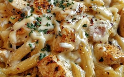 🍽️✨ **Kremowy obiad z kurczakiem penne i trzema serami**
