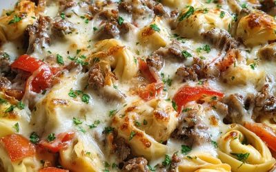🧀🥩 **Zapiekanka z serem tortellini i stekiem z serem Provolone Glory** **Składniki:** 🥩 450 g mielonej wołowiny lub cienko pokrojonego…