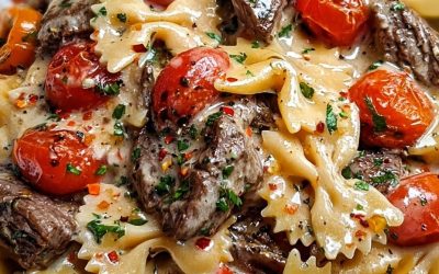 🥩🍅💛 **Kremowe kokardki z wołowiną i pomidorkami koktajlowymi**