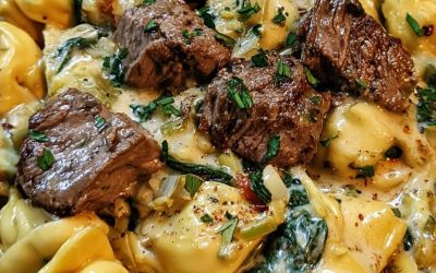 🥩🧀🍝🌿 **Kremowe kawałki steku z serem i tortellini ze szpinakiem, karczochami**