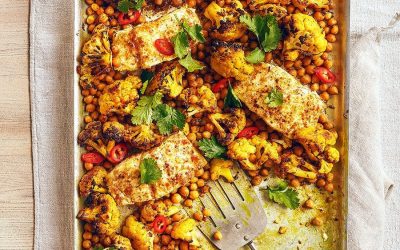 Dorsz pieczony w maśle curry z kalafiorem i ciecierzycą Szukasz prostego, aromatycznego i zdrowego obiadu? Ten dorsz pieczony w maśle…