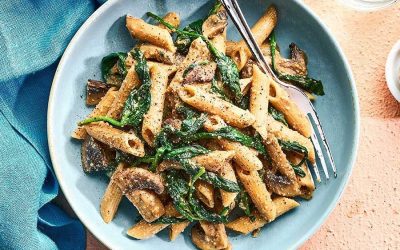 Kremowe penne ze szpinakiem i pieczarkami Idealny pomysł na szybki, aromatyczny i super kremowy obiad – gotowy w 30 minut! Składniki…