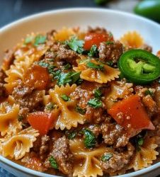 **🌶️ Pikantny makaron z wołowiną i kokardkami z jalapeño 🔥🍝** Masz ochotę na wyraziste smaki? Ten pikantny makaron z wołowiną…