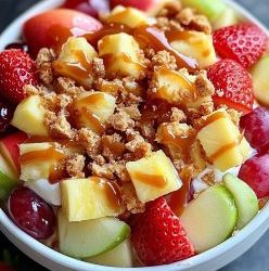 🍰✨ Sernik z karmelowym chrupiącym serem i owocową sałatką Składniki: 🍓 2 szklanki pokrojonych truskawek 🍍 1 szklanka kawałków ananasa…