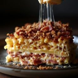 **🧀🔥 Zapiekanka z makaronem i serem, bekonem i kremowym bekonem** Gotowi na przytulny wieczór w domu? Ta zapiekanka z makaronem…