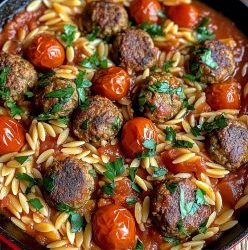 🍅🧆 Soczyste klopsiki w pikantnym sosie pomidorowym z makaronem orzo 🧆🍅