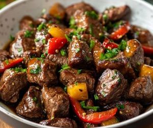 **🍯🔥 Słodkie i lepkie kawałki steku z miodem, czosnkiem i papryką – smażone na powietrzu do perfekcji! 🌶️🥩** Soczyste kawałki…