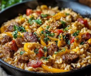 **🔥🫑 Ryż z kremową kiełbasą i papryką w jednym garnku 🍚🧀** Szukasz szybkiego, aromatycznego obiadu z minimalną ilością sprzątania? Ta…