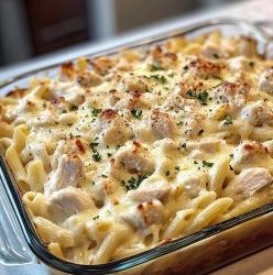 **🍗🧄 Zapiekanka z kurczakiem i sosem Alfredo Penne w kremowym sosie** Przygotuj się na kremowe, serowe danie z makaronem, które…
