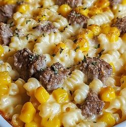 **🧀🌽 Zapiekanka Rotini z wołowiną, sosem cheddar i słodką kukurydzą 🍖🍝**