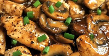 **🍄🔥 Kurczak z czarnym pieprzem i grzybami smażony na patelni 🥢🌶️** To wyraziste i pikantne danie łączy delikatnego kurczaka i…