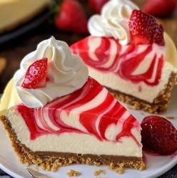 **🍓🍰 Sernik truskawkowy Swirled Strawberry Dream! ☁️❤️** Ten wymarzony sernik łączy aksamitne nadzienie waniliowe z nutą słodkiego musu truskawkowego, tworząc…