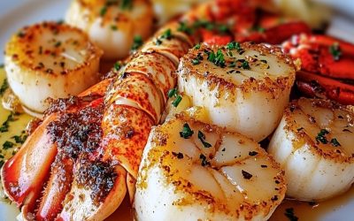 Homar w maśle czosnkowym i smażone przegrzebki – luksusowa uczta z owoców morza!