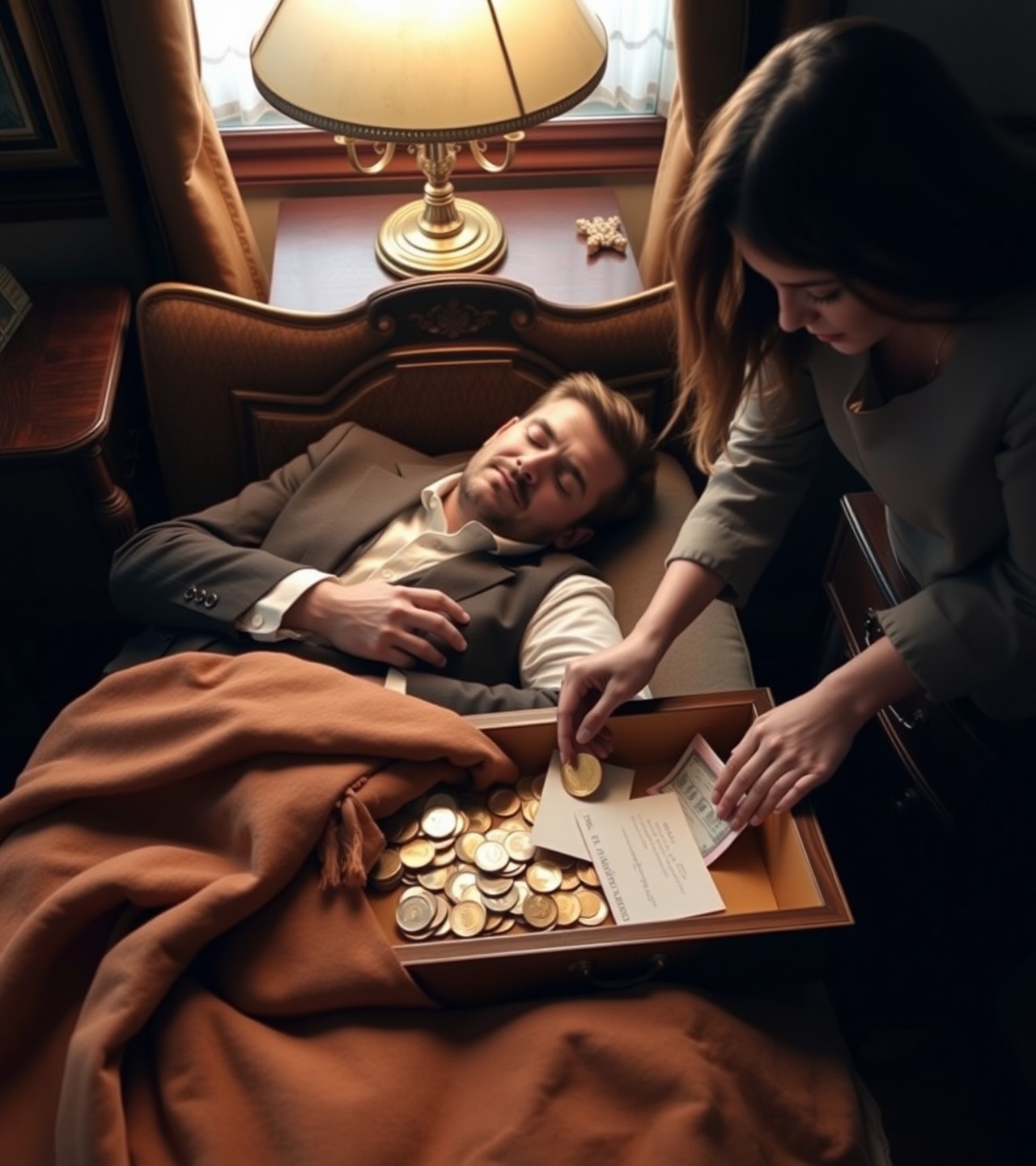 Leżało rozrzucone na szklanym blacie stołu — dwa ciężkie bransolety, męski sygnet, delikatny łańcuszek z zawieszką w kształcie łzy. Obok nich spoczywała gruba skórzana portmonetka, rozpięta, z lekko otwartym wlotem, zielone brzegi banknotów widoczne nawet z drugiego końca pokoju.